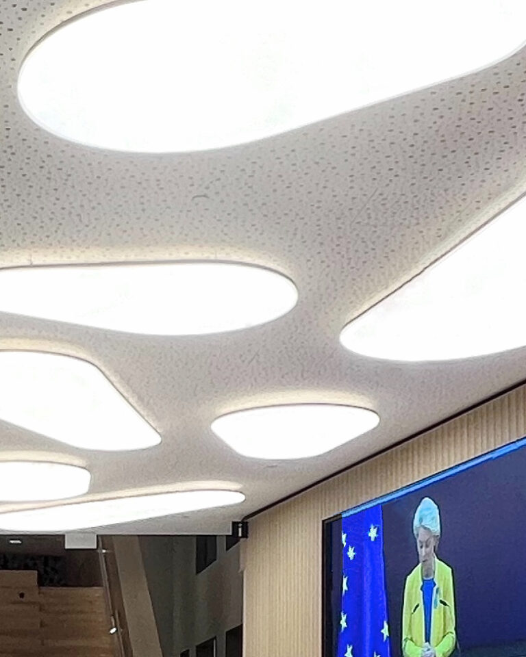 Taking the product OvalXL to its limits; an array of large oval-shaped fixtures of various sizes in symmetrical and a-symmetrical forms has been created to deliver a stunning end-result. Situated in the lobby of the visitor centre, it is the first thing ‘hitting’ you when you enter the building. A-symmetrical panels stretching up to 2500mm, delivering up to 14,000lm flicker-free diffused light, are combined with smaller panels of 1500mm and 1000mm to make up a unique light feature. An architectural signature detail that lends identity to the building.