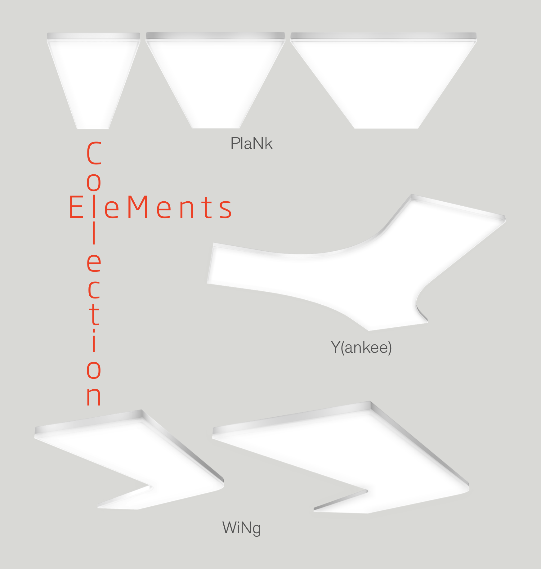 EleMents is a unique collection of configurable LightPanels to create large scale, homogeneously lit, shaped lighting elements.