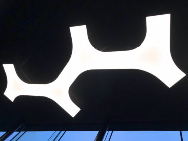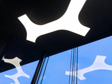 A great MorPh installation of 4 connected MorPh LightPanels, in the entrance of luxury supermarket Delhaize in Roeselare (Belgium).
