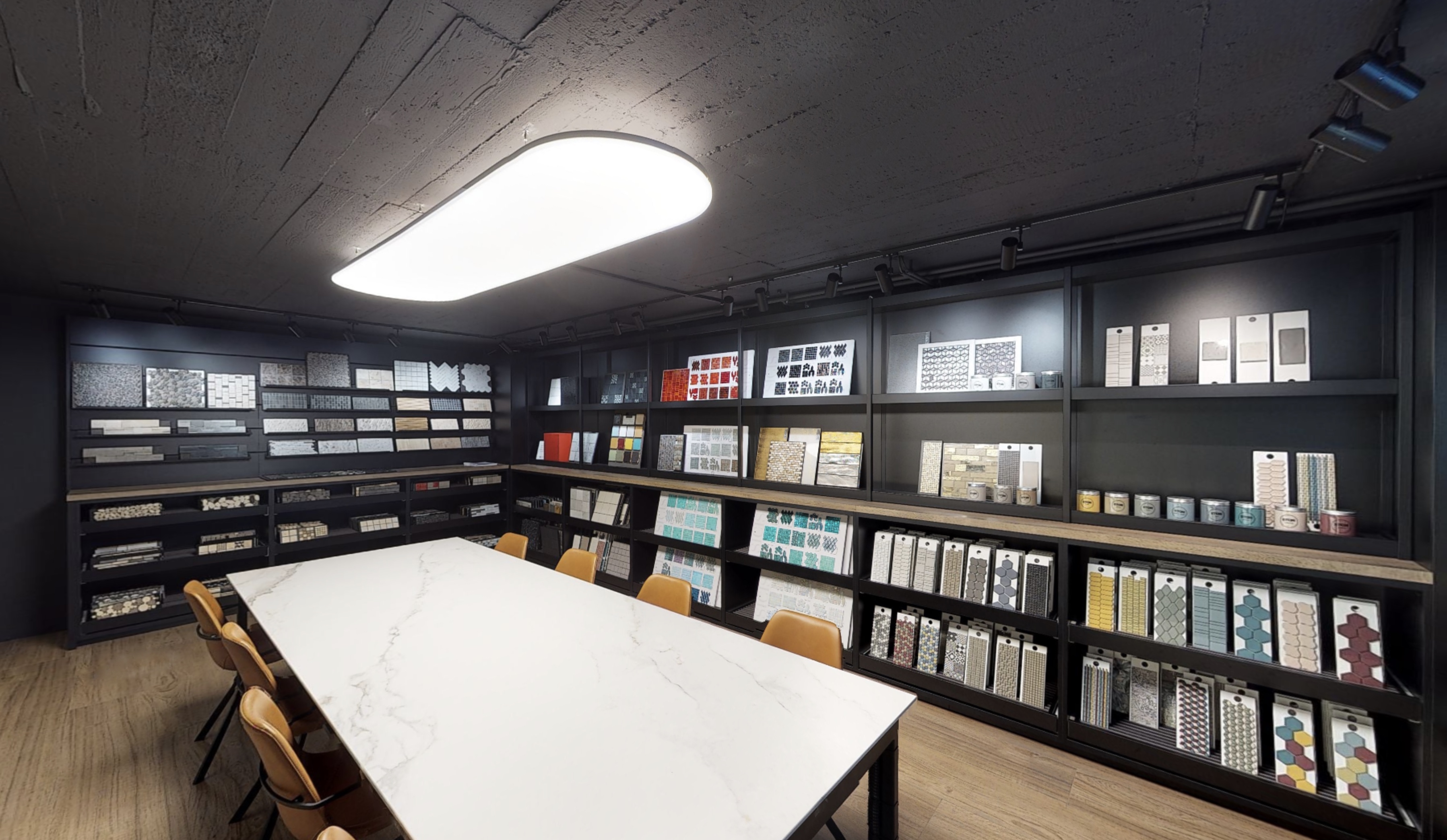 Carimar, supplier of high-end Ceramics and Natural Stone for walls, floors, kitchen and bathroom. For their inspiration/meeting room they have selected ArchilumO’s OvalXL-S panel to create high volumes of comfortable, flicker-free task lighting on their working surfaces.